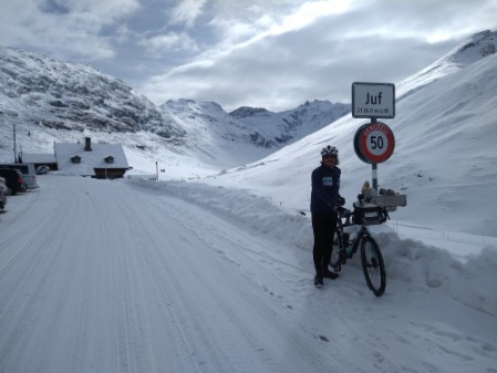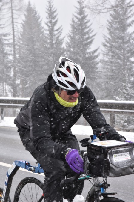 La salita piu fredda? il Julierpass dove Giovanni ha dovuto "fare i conti" con una bufera di neve e vento che hanno portato la temperatura a -19° mentre quella percepita era di -26° !!