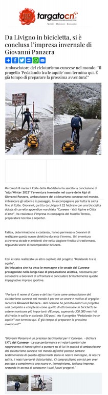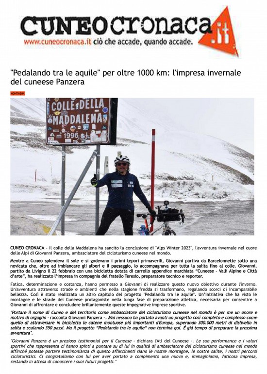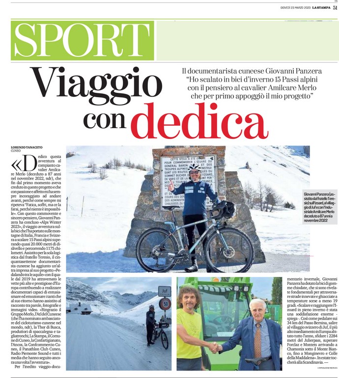 Ultimo atto della traversata invernale delle Alpi è stata quella al Colle della Maddalena sotto una fitta nevicata sul lato francese mentre su quello italiano splendeva il sole, poi discesa e l'arrivo a Cuneo che sanciva il successo dell'impresa di Giovanni.