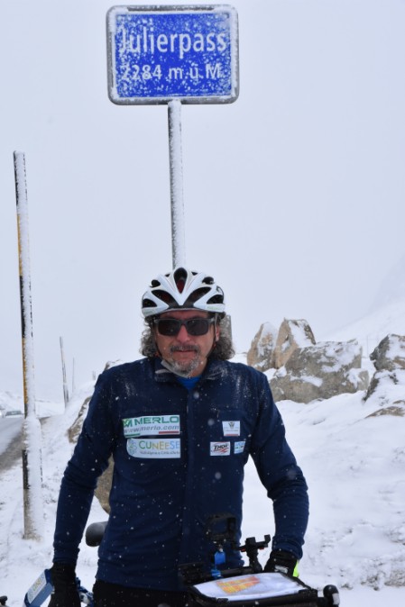 La salita piu fredda? il Julierpass dove Giovanni ha dovuto "fare i conti" con una bufera di neve e vento che hanno portato la temperatura a -19° mentre quella percepita era di -26° !!