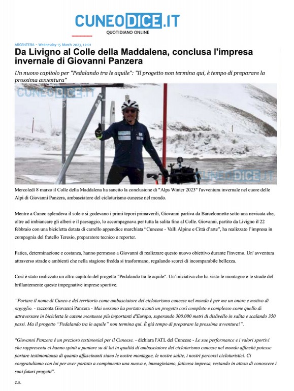 Ultimo atto della traversata invernale delle Alpi è stata quella al Colle della Maddalena sotto una fitta nevicata sul lato francese mentre su quello italiano splendeva il sole, poi discesa e l'arrivo a Cuneo che sanciva il successo dell'impresa di Giovanni.