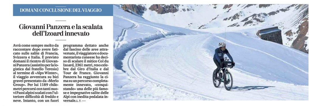 La strada che porta al Col d'Izoard è chiusa in inverno; la sua salita è stata resa possibile dalla presenza di una pista innevata che ricalcando la strada ha permesso al bcicloturista cuneese di raggiungere i 2371 metri, dove si erge il grande memoriale che ricorda coloro che hanno realizzato la strada nel lontano 1893.